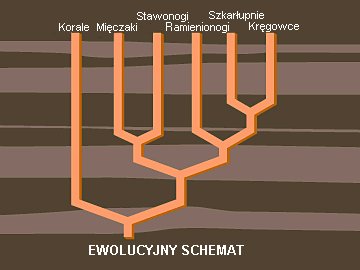 Rys. B: Ewolucyjny schemat pochodzenia prezentowany na wystawie "Życie poprzez czas: świadectwo na rzecz ewolucji".